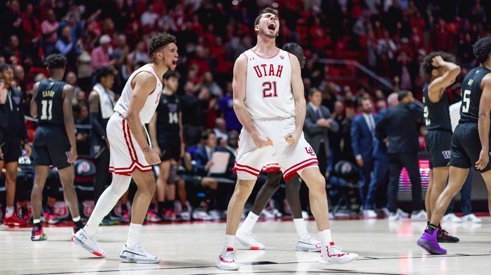 Utah’s Riley Battin celebrates a moment vs Washington. | Utah Athletics |